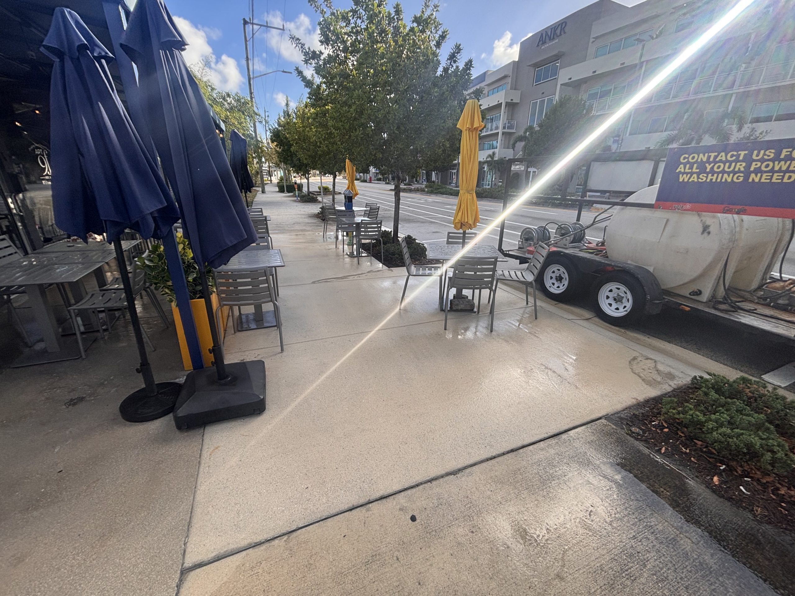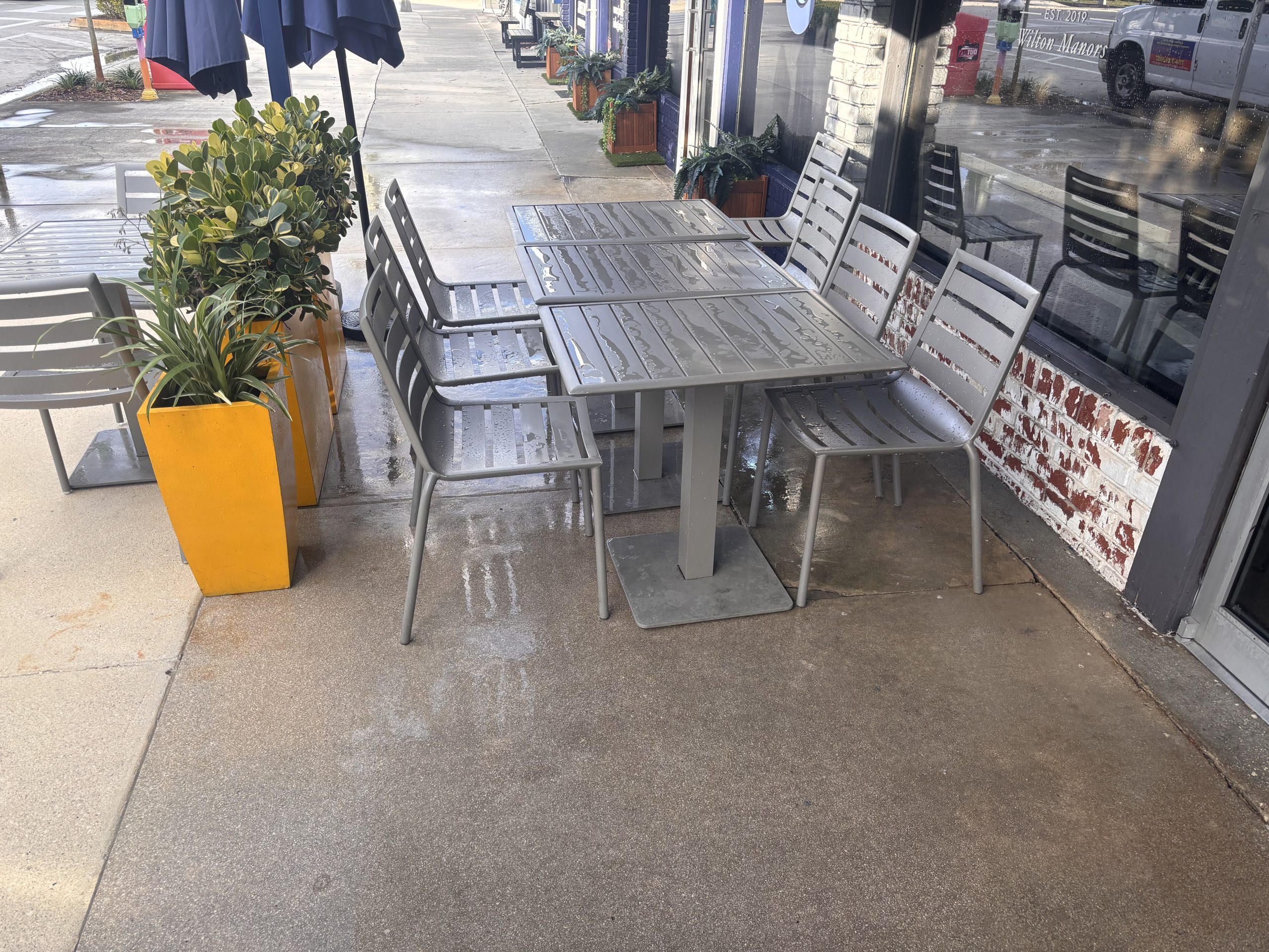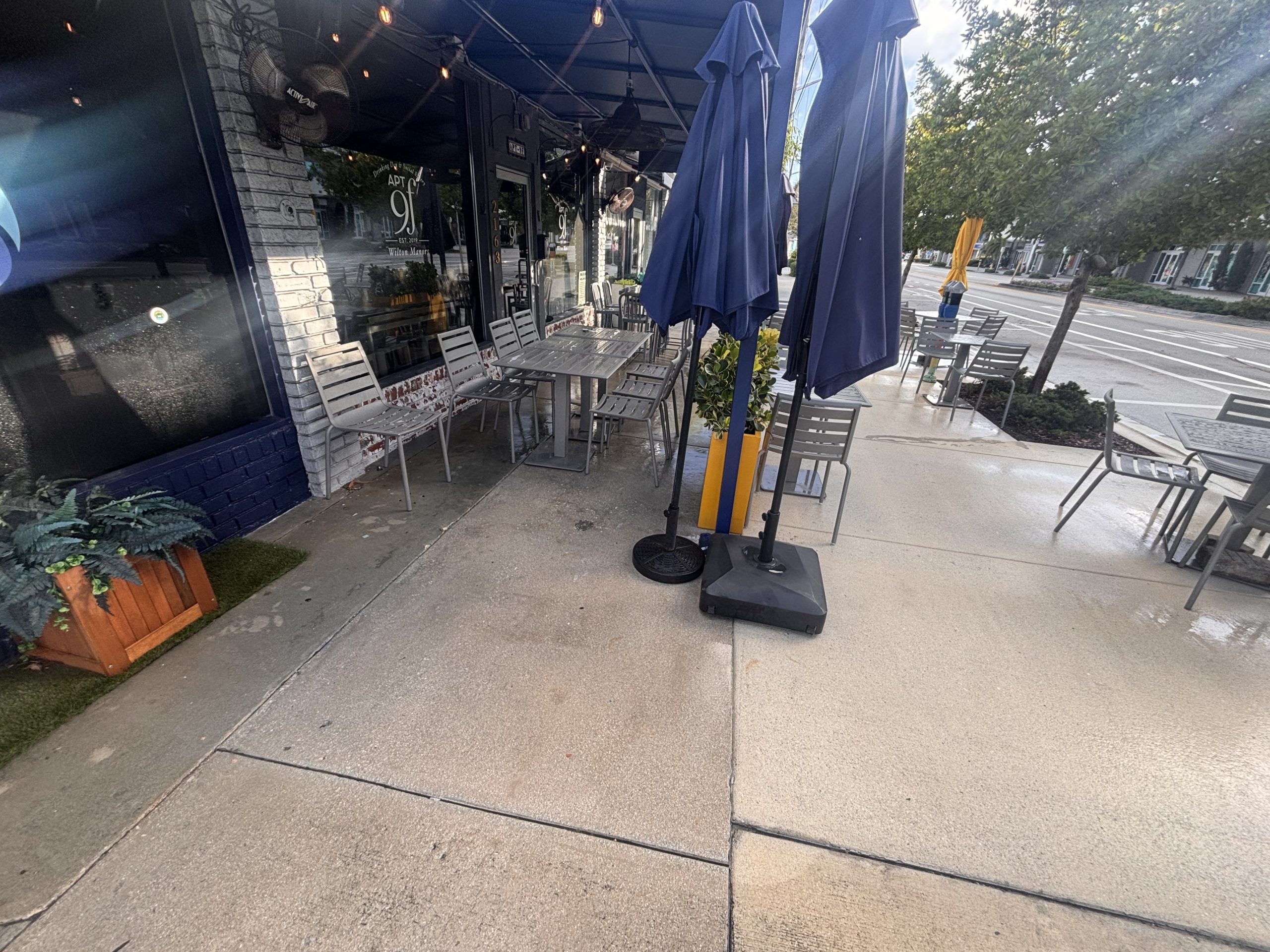 Power Washed Restaurant patio and sidewalk on Wilton ManorsDetailsCompleted April 2026Location Wilton ManorsCategoryPower Washing Share this page... Back To GalleryPower-washed restaurant patio & sidewalk for Apt 9F on Wilton Drive in Wilton Manors. Moved all furniture and other items, cleaned with hot water, and returned all items (chairs, tables, umbrellas…) when done. Before PhotosAfter Photos