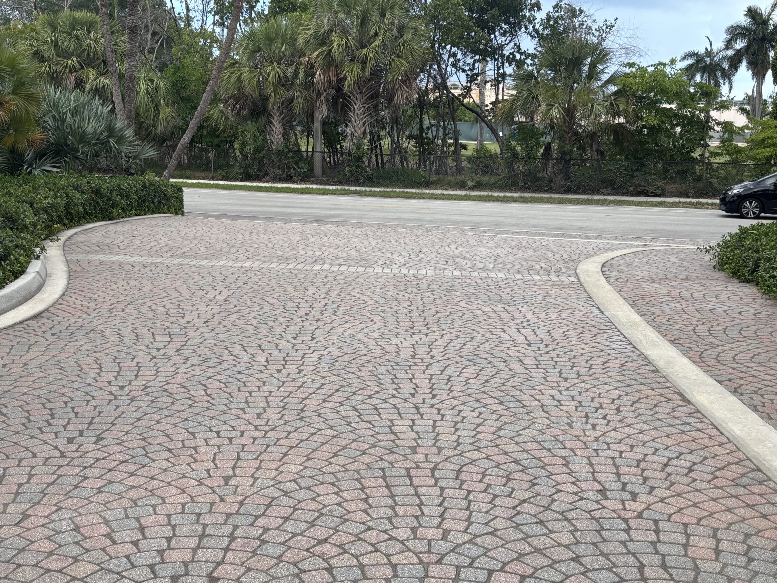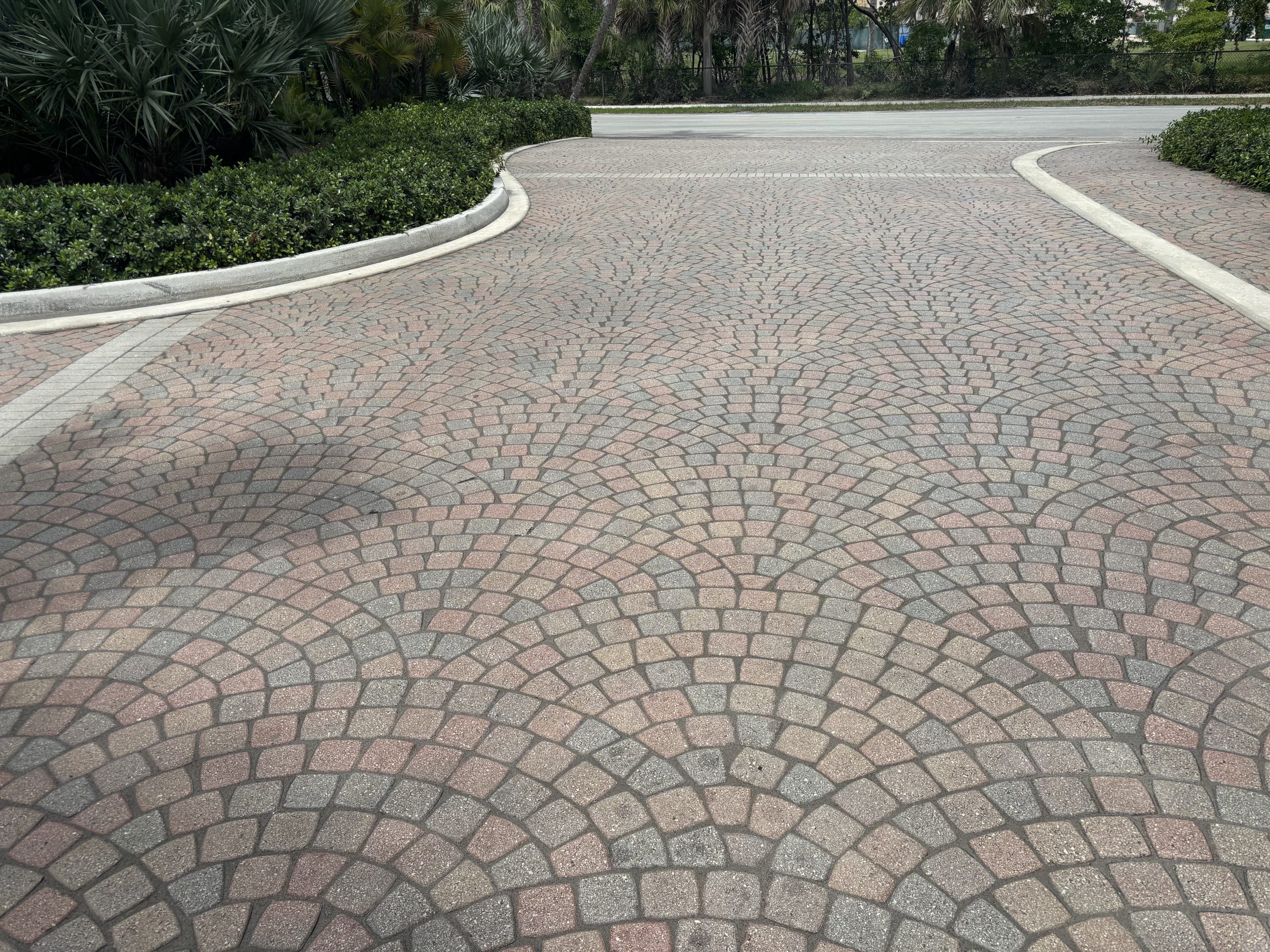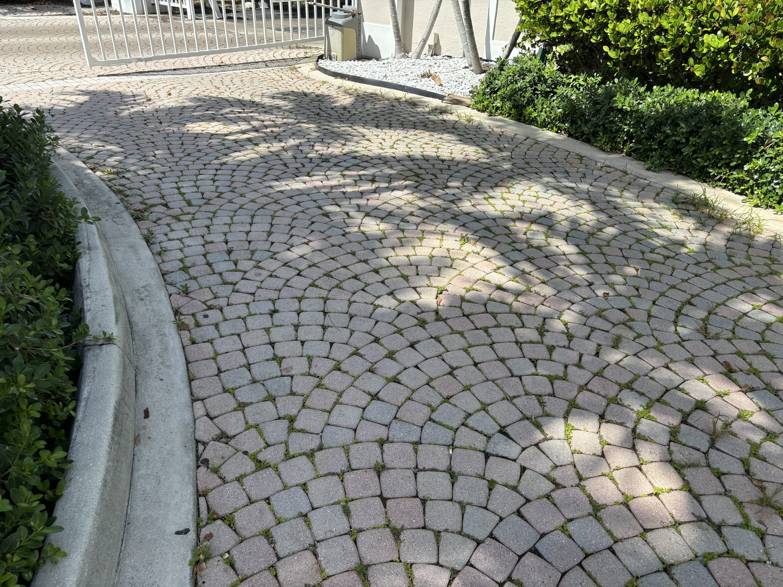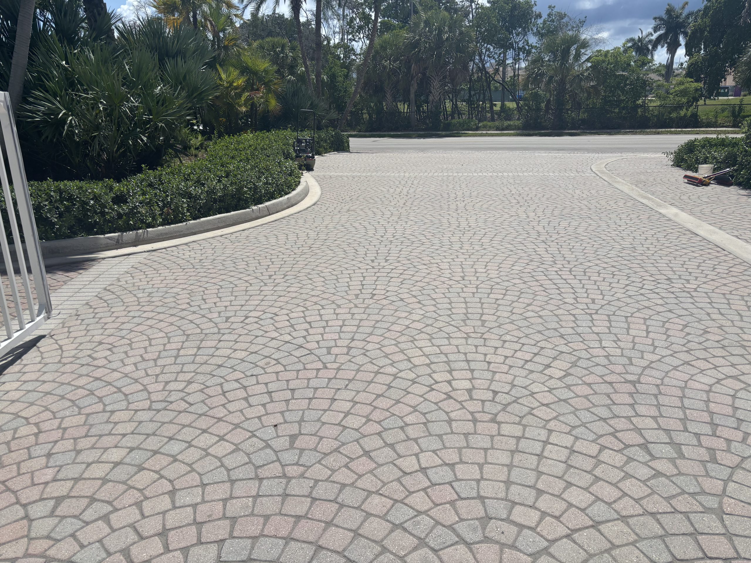 We power-washed & removed all the weeds and old sand from the entranceway of this community in Hollywood, Re-sanded and sealed the pavers. We had to split the job in half doing the entrance, then the exit to minimize the inconvenience of the homeowners while the project was going on.