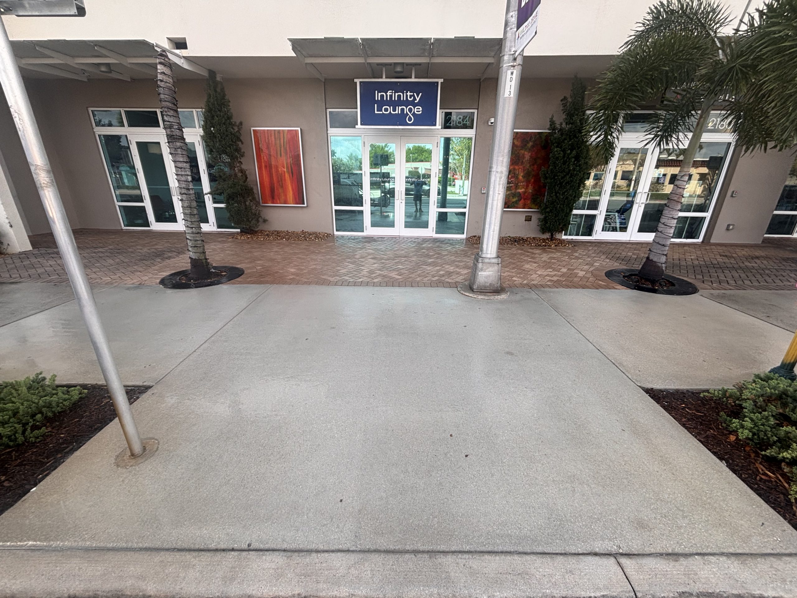 Power Washed Storefront in Wilton ManorsDetailsCompleted March 2026Location Wilton ManorsCategoryPower Washing Share this page... Back To GalleryPower-washed sidewalk & front patio for Infinity Lounge. We power-washed the sidewalk & front patio for Infinity Lounge on Wilton Drive in Wilton Manors for their grand opening, removing all dirt, gum, mold & mildew. Before Photos