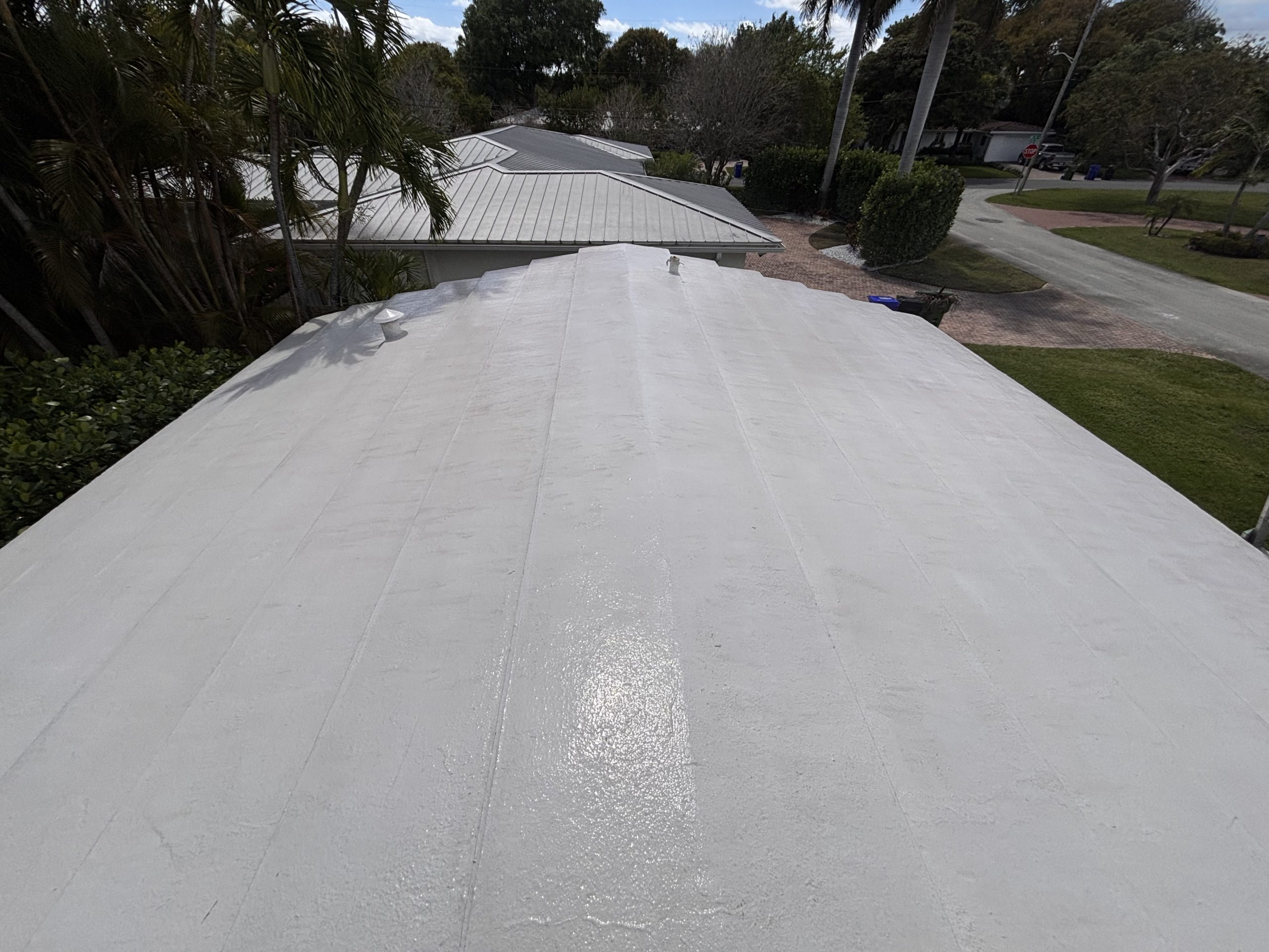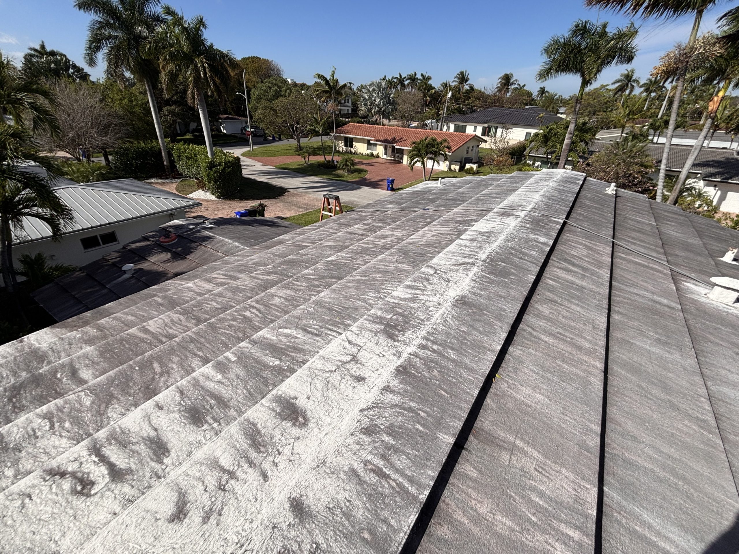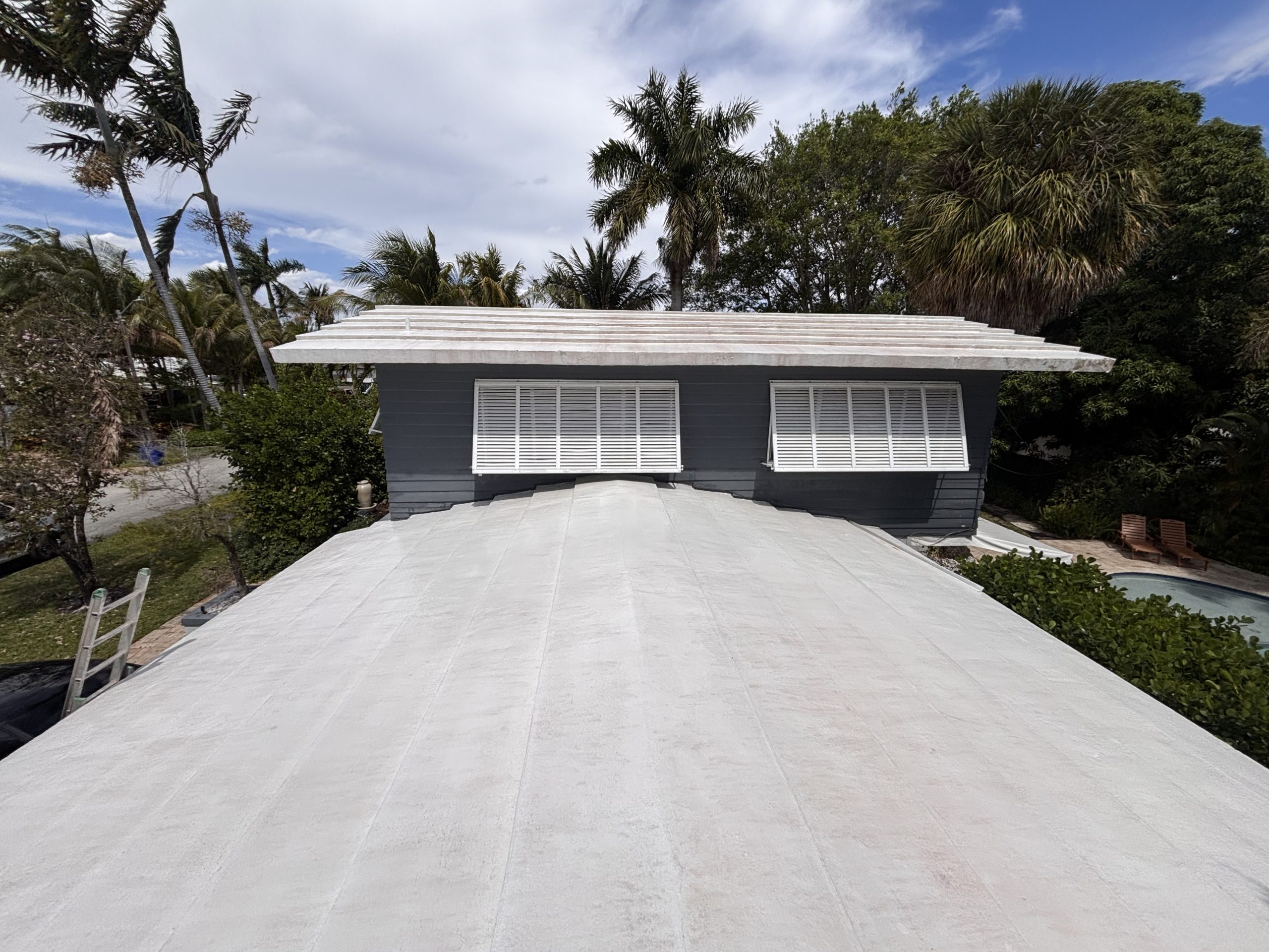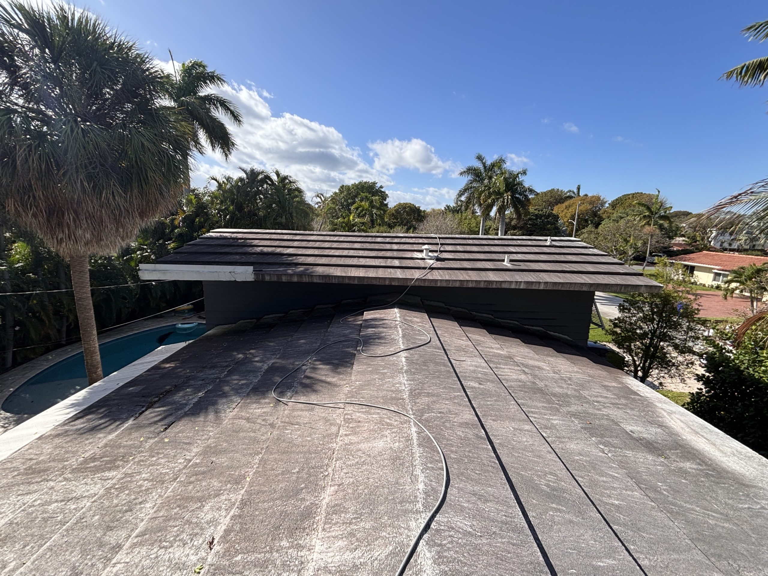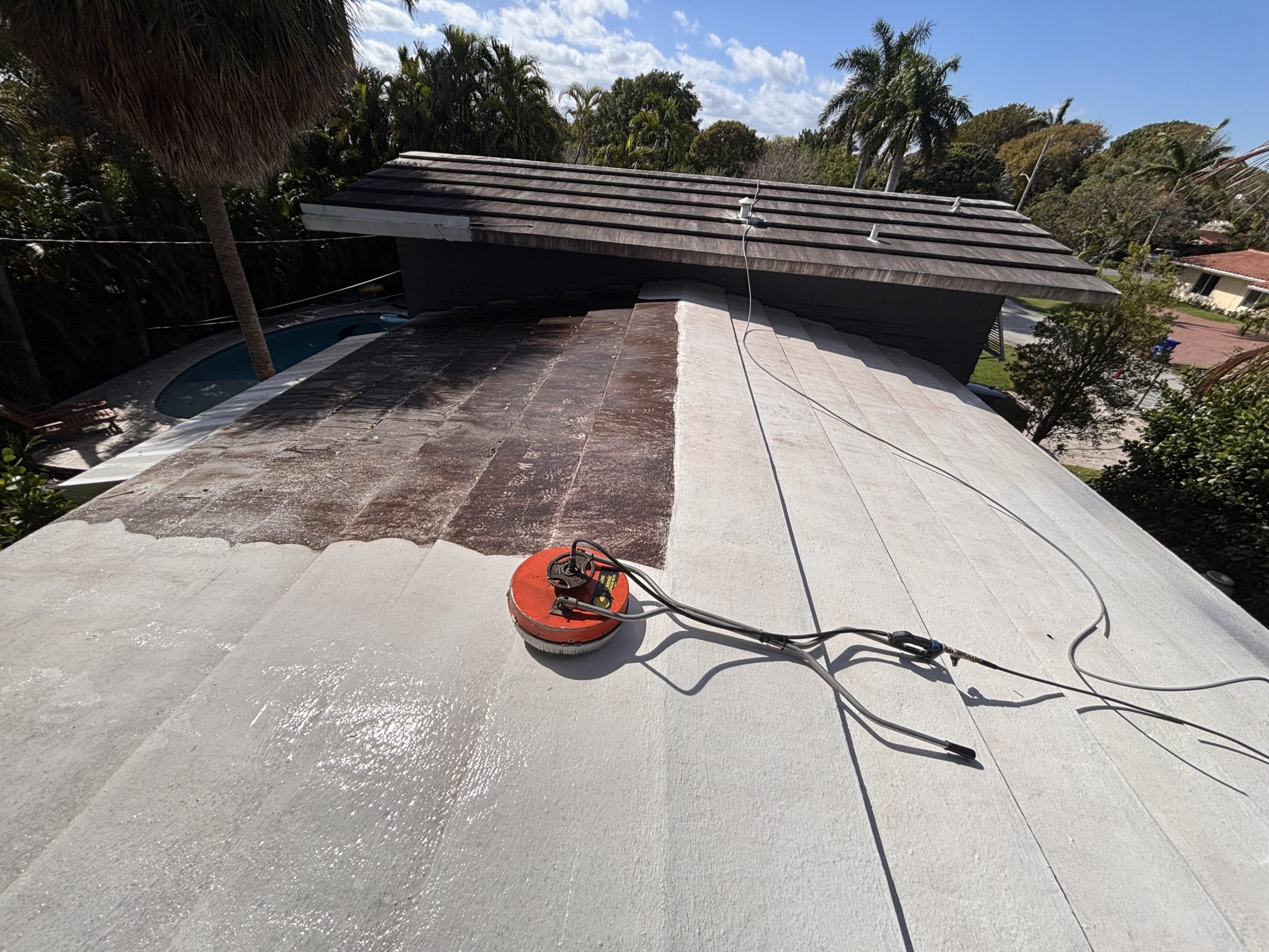 We cleaned this split-level poured concrete roof for a customer in East Ft Lauderdale. They didn’t think it would come clean due to the condition of it, the amount of black mold & red algae. Although some of the red algae actually stained the roof coating it came out pretty good. We gave them a quote to put another coat of Elastomeric coating on it, and we will be doing this in a few weeks.
